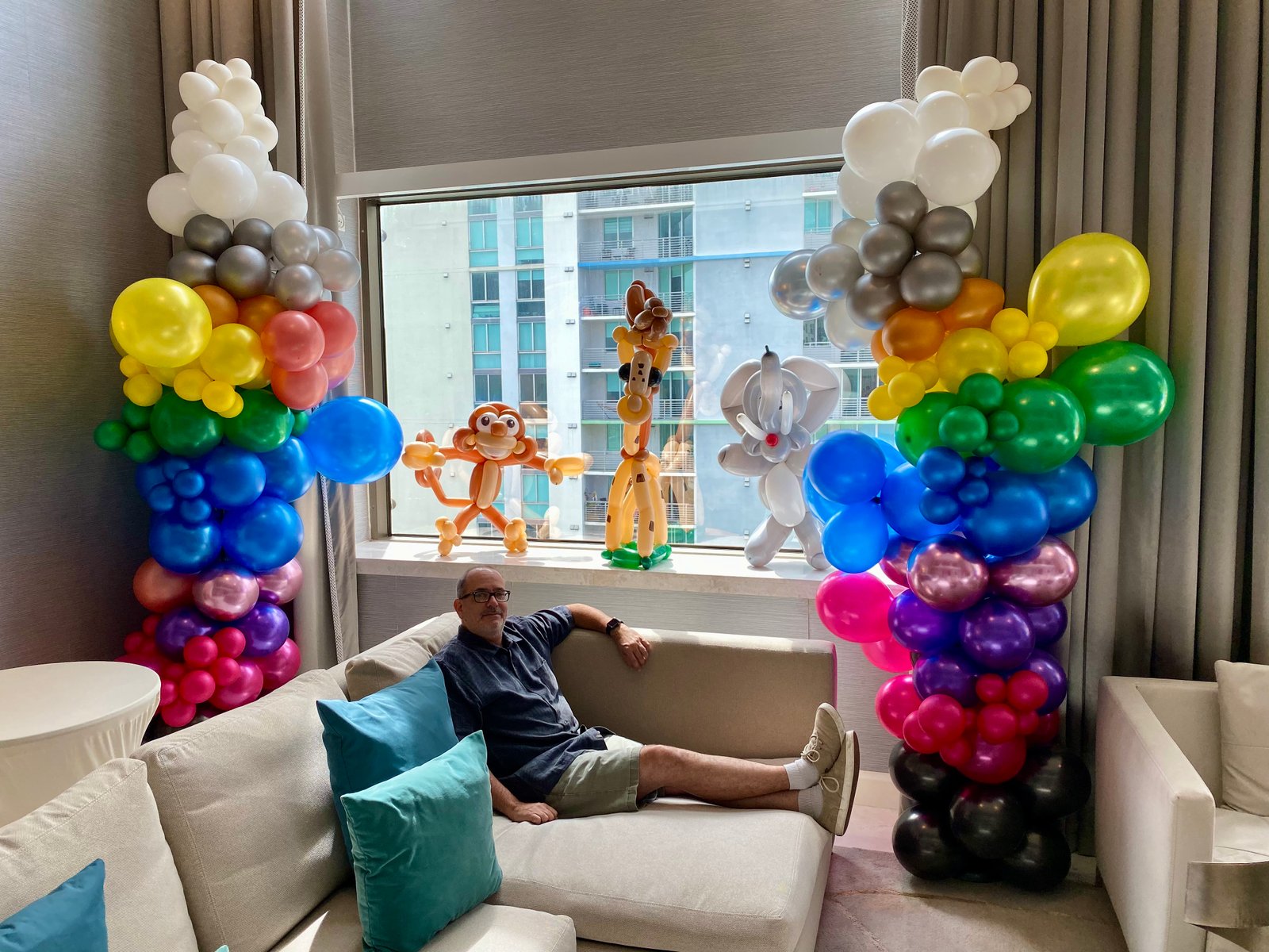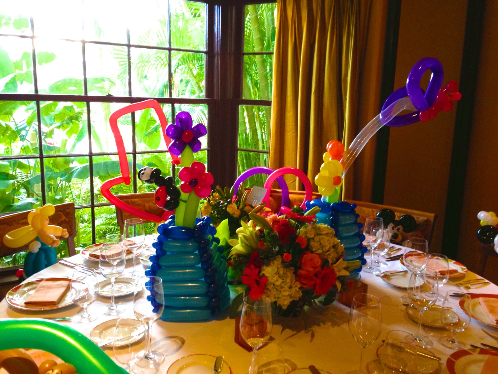 Special Requests are no problem! One client asked for a large crazy balloon hat to be put on each chair around a large table for a birthday party. Everyone was flying in and hadn't seen each other in quite some time. All these adult business people wearing the crazy hats instantly broke the ice and the event was a smash hit!
